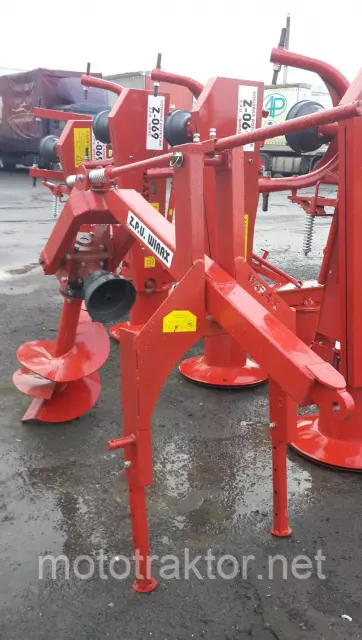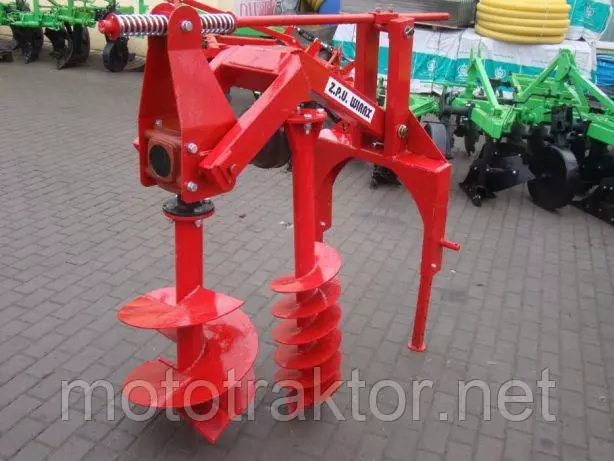 Рабочая часть польского бура изготовлена из очень прочного металла, и поэтому ему под силу даже очень крепкие почвы. Процесс бурения полностью автоматизирован, привод выполняется от вала отбора мощности (ВОМ), а подъем и опускание происходит с помощью гидравлической системы, управляемой с места тракториста .