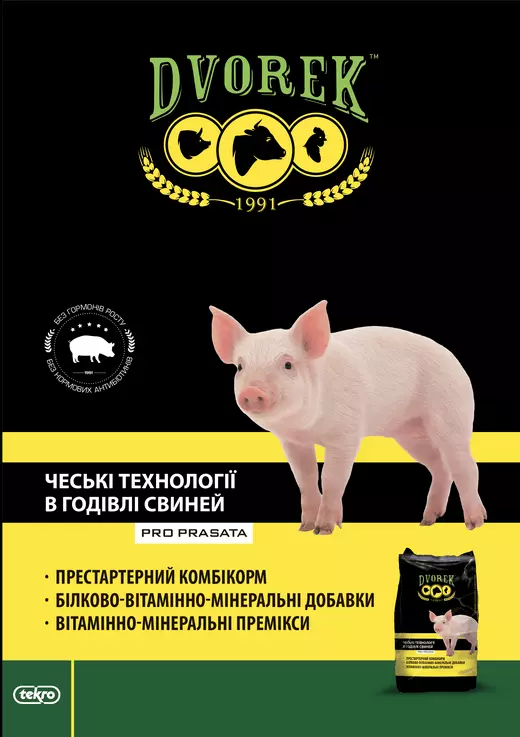 Лінійка продуктів під ТМ Dvorek - спеціально розроблена для потреб своїх клієнтів компанією Текро. Чеська компанія Текро заснована в 1991 році і на сьогоднішній день є провідною компанією України та лідером ринку Чехії та Словаччини з виробництва вітамінно-мінеральних сумішей, концентратів, преміксів та готових кормів.