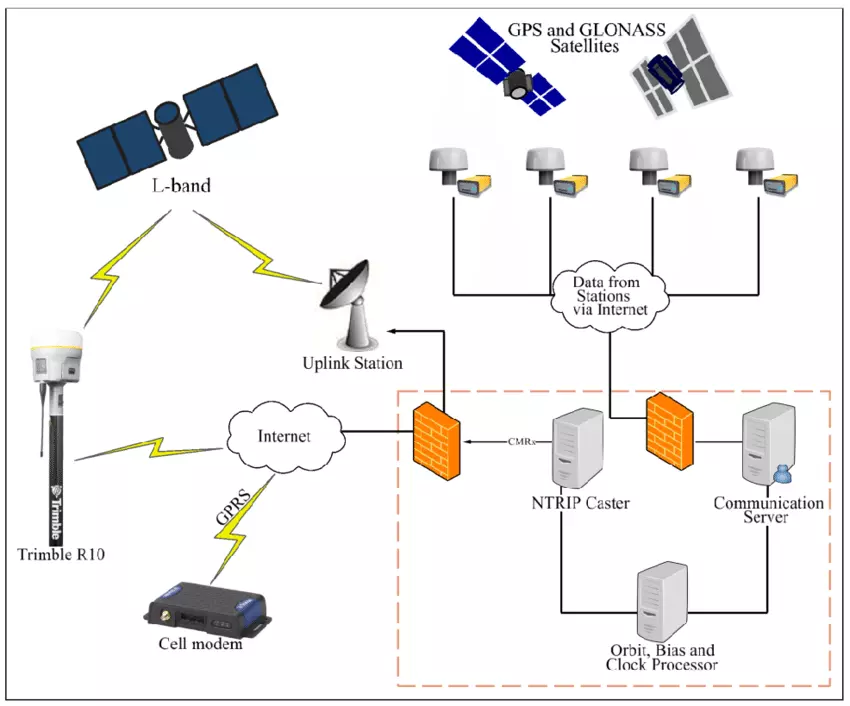 Потоки коррекционных данных Trimble RTX доставляются непосредственно к приемнику Trimble через сотовую связь, что позволяет рассчитать вашу позицию. Для того, чтобы получить корректирующие сообщения, приемник должен быть оснащен сотовой связью или быть подключенным к устройству, который оснащен или предоставляет сотовую связь.