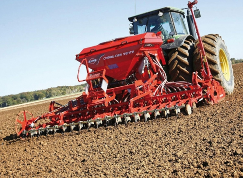 Фиксированный тип бункера с уплотнителем - ценральный распределитель семян - высокопроизводительная турбина для равномерного распределения при больших объемах посева - интегрированный отцентрован привод турбины - крепление боковых маркеров к активному навесному оборудованию - самоочищающие сошники - фиксированное крепление посредством треугольника - полный приборный контроль HECTOR 3000 основных функций сеялки.