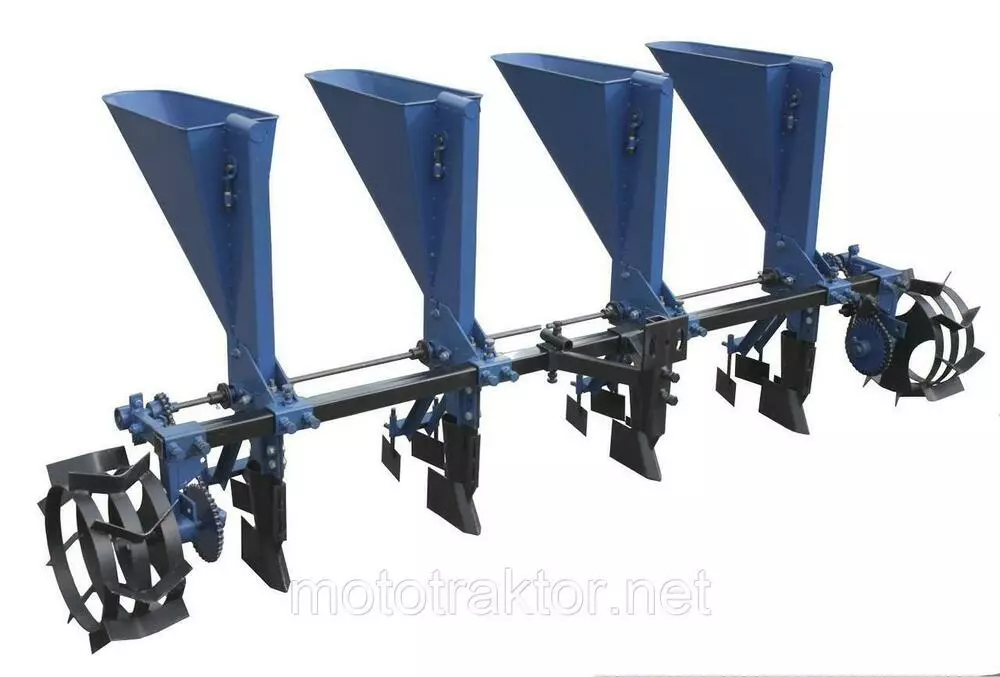Технические и производительные особенности четырех рядной сажалки чеснока:Механическая, четырех рядная чеснокосажалка служит для высадки зубков чеснока в предварительно подготовленный и обработанный грунт. Устанавливается на мототрактора и минитрактора. Для посадки используется откалиброванные зубцы, примерно 15-25 мм.