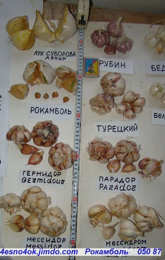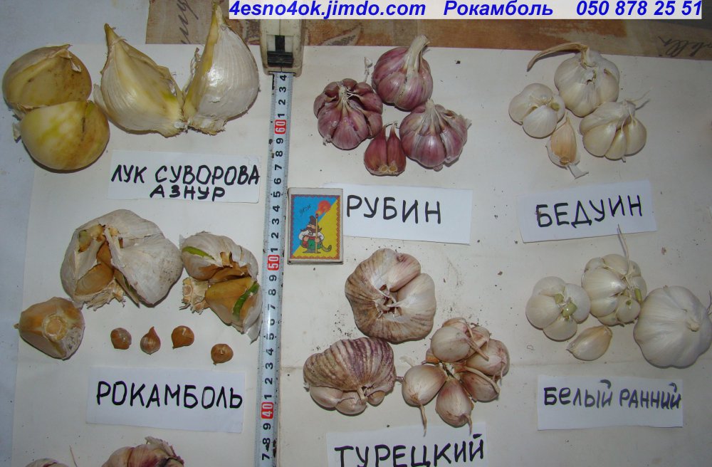 ЛУК  СУВОРОВА — АНЗУР, чеснок ГЕРМИДОР (Germidor), МЕССИДОР (Messidor), МЕССИДРОМ (Messidrom), ПАРАДОР  ( Parador), РУБИН (Ruby), БЕДУИН (Bedouin), КОРОНА (Сorona), ФАРФОРОВЫЙ  (Porcelain), ФИОЛЕТОВЫЙ СТАНДАРТ   (Purple   Standart)