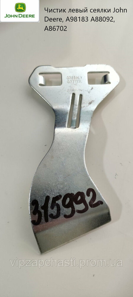 Чистик левый сеялки John Deere, A98183 A88092, A86702