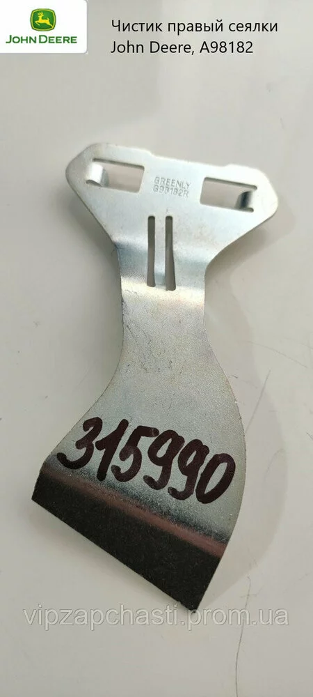Чистик правый сеялки John Deere, A98182 A88091, A86701