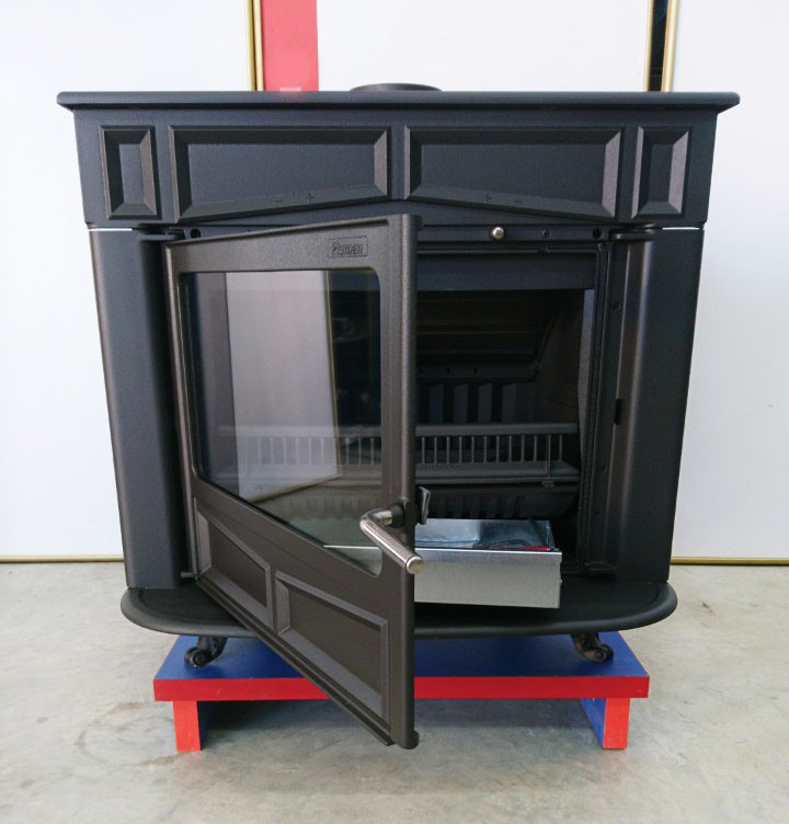 Чугунная печь-камин на ножках Plamen Glas Franklin 13 кВт. Изготовлена полностью из чугуна. Дизайн исполнен с сдержанном традиционном стиле. Дверца с огнеупорным стеклом, позволяет наслаждаться видом пламени. Внутри есть ограничитель дров. Стекло очищается от потоков воздуха. Отвечает всем европейским стандартам качества.