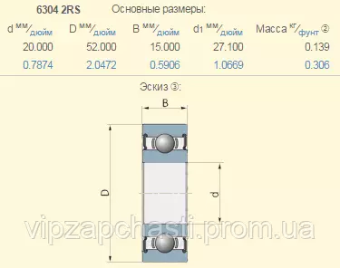 D41628800 подшипник Massey Ferguson 6304-2RS TIMKEN