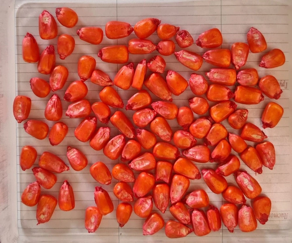 Зерно желто-оранжевое, иногда проявляются красные полосы, зубоподобное.
