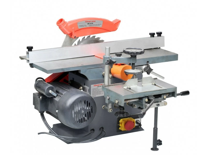 Комбинированный  станок деревообрабатывающий ЭНЕРГОМАШ ДМ-19150  предназначен для обработки заготовок из дерева и его производных: строгания, продольного и поперечного пиления (пильный станок), сверлильно-пазовые операции (сверлильно-долбежная машина). Подойдет для столярных работ в производственных цехах, хотя его можно использовать в бытовых условиях. Он незаменимый помощник на мебельных производствах.