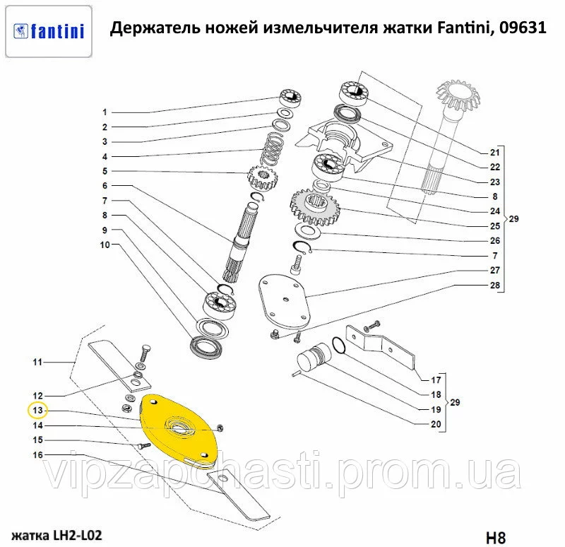 Держатель ножей измельчителя кукурузной жатки Fantini, 09631