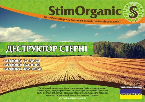 Многокомпонентный препарат деструктор соломы “СтимОрганик” содержит специально подобранные микроелемнты и вспомогательные вещества, которые в комплексе оказывают положительное воздействие, подавляют возбудителей болезней и способствуют разложению растительных остатков.