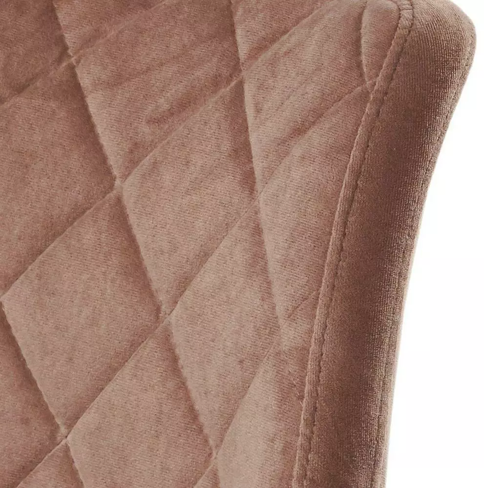Обзор стула Diamond, велюр цвета мокко Обеденный стул Diamond - стильная современная модель, которую можно разместить в обеденной зоне кухни или гостиной, возле туалетного столика в спальне или рядом с домашним рабочим местом. Благодаря практичным и прочным материалам, стулья также можно использовать в пространствах с высоким потоком посетителей - в ресторанах, кафе и отелях. Чёткие геометрические линии, лаконичный дизайн и функциональность – Даймонд сочетает в себе черты современного мебельного дизайна и отличной эргономики. Обивка декорирована прошивкой в ромбик. Стилистическое решение можно назвать современным и универсальным. Благодаря сочетанию чёрных металлических ножек и мягкой фактурной обивки, стулья будут прекрасно смотреться как в лофтовых пространствах, так и в более нейтральном современном интерьере с элементами модерна. Обратите внимание, что обеденные стулья Diamond идеально сочетаются с полубарными моделями Diamond, создавая единую стилистическую композицию. Обивка: мебельная ткань велюр Обивка стула выполнена из мебельной ткани велюр с коротким ворсом, очень мягкой и приятной на ощупь. Ткань специально предназначена для использования в мебельной промышленности, образец текстиля прошёл все необходимые тесты на износоустойчивость (не менее 25 тыс циклов истирания по Мартиндейлу). Подходит для ежедневного использования дома, а также для коммерческого применения (сегмент HoReCa). Цвет - мокко, который может иметь разный подтон в зависимости от освещения. Подробнее: каркас сиденья сделан из металла и фанеры;