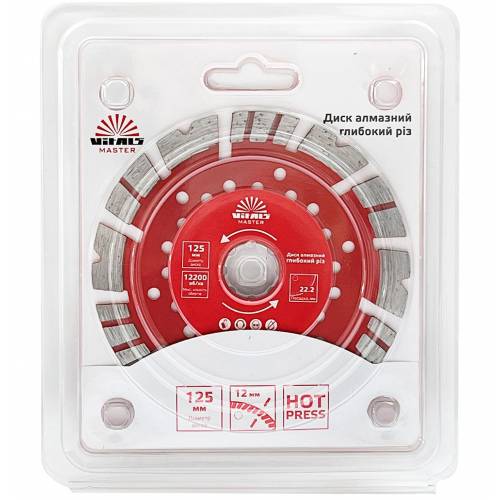 Диск алмазний Vitals Master Глибокий різ 230 мм призначений для роботи з такими будівельними матеріалами, як: бетон, залізобетон, тротуарна плитка, цегла, граніт, камінь, черепиця.