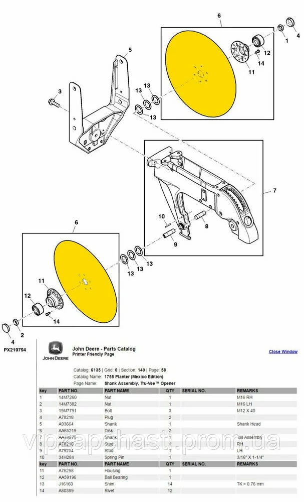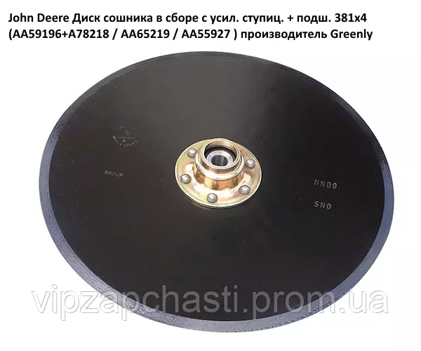 Диск сеялки John Deere AA65219 (рем. комплект диска A76298 ступица  + AA59196 подшипник + A80389 заклепка + J16160 крышка)