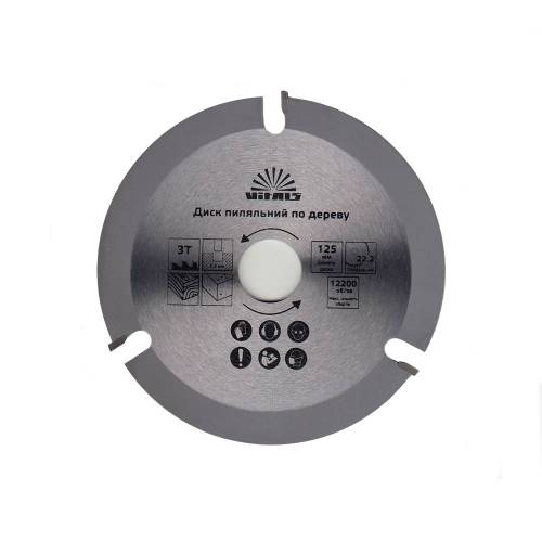 Диск пиляльний Vitals по дереву 125x22.2, 3Т - це унікальний трьохзубий пиловий диск, спеціально розроблений для роботи з високооборотистими кутовими шлифмашинами (КШМ).
