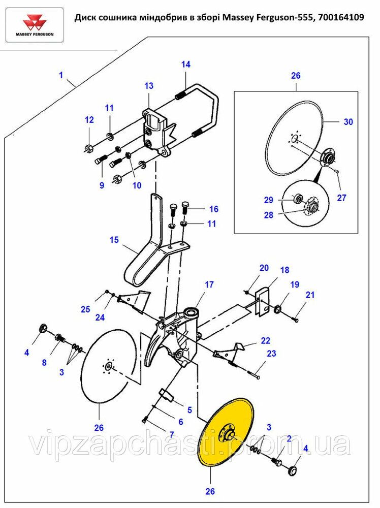 Диск сошника міндобрив в зборі з підшипником Massey Ferguson-555, 700164109