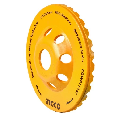 Диск Турбо шліфувальний чашковий 115 мм INGCO призначений для шліфування поверхонь з каменю, бетону, мармуру, граніту, як робочий елемент для кутової шліфувальної машини.
