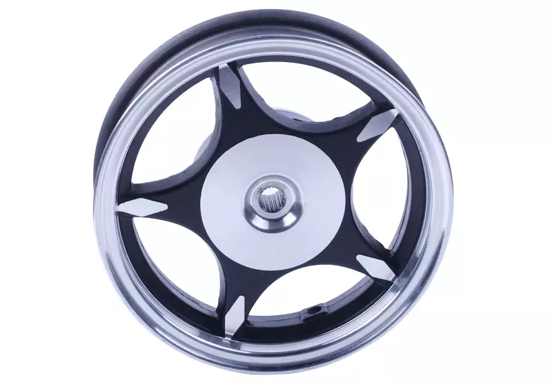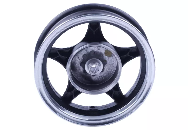 Задний диск 10*2,5 ТАТА под барабанный тормоз. Подходит для китайских скутеров разных марок, изготовлен методом литья из алюминиевых или магниевых сплавов. Предназначен для бескамерных и камерных покрышек, устанавливается на вал вариатора скутера. При подборе диска нужно обращать внимание на его диаметр, а также на количество шлицев на валу. Для помощи в выборе диска обращайтесь к техническим специалистам.