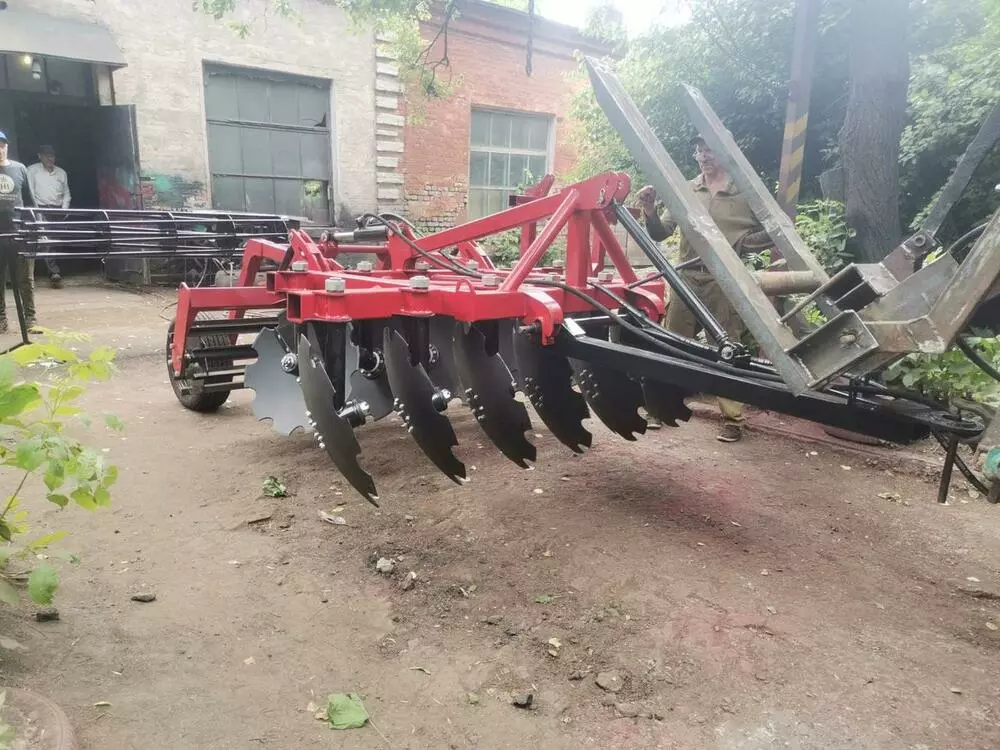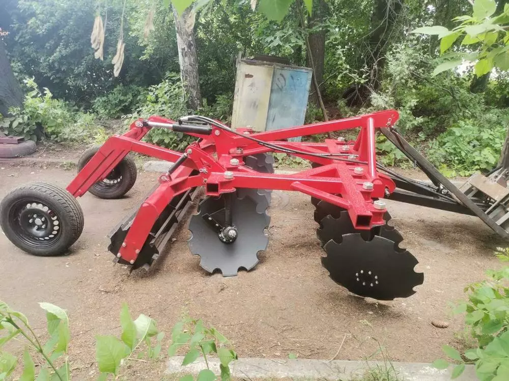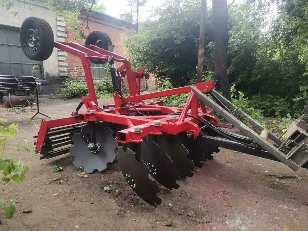 Агрегат грунтообрабатывающий дисковый (навесной/полуприцепной). Диски изготовлены из марганцево-боросодержащей стали 30MnB5, диаметр диска – 655 мм. Каток из угольника/каток из трубы/каток из полосы.