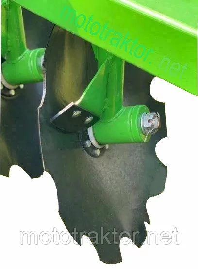 Равномерное заглубление первого и второго ряда дисков, регулируется центральной тягой навески трактора.