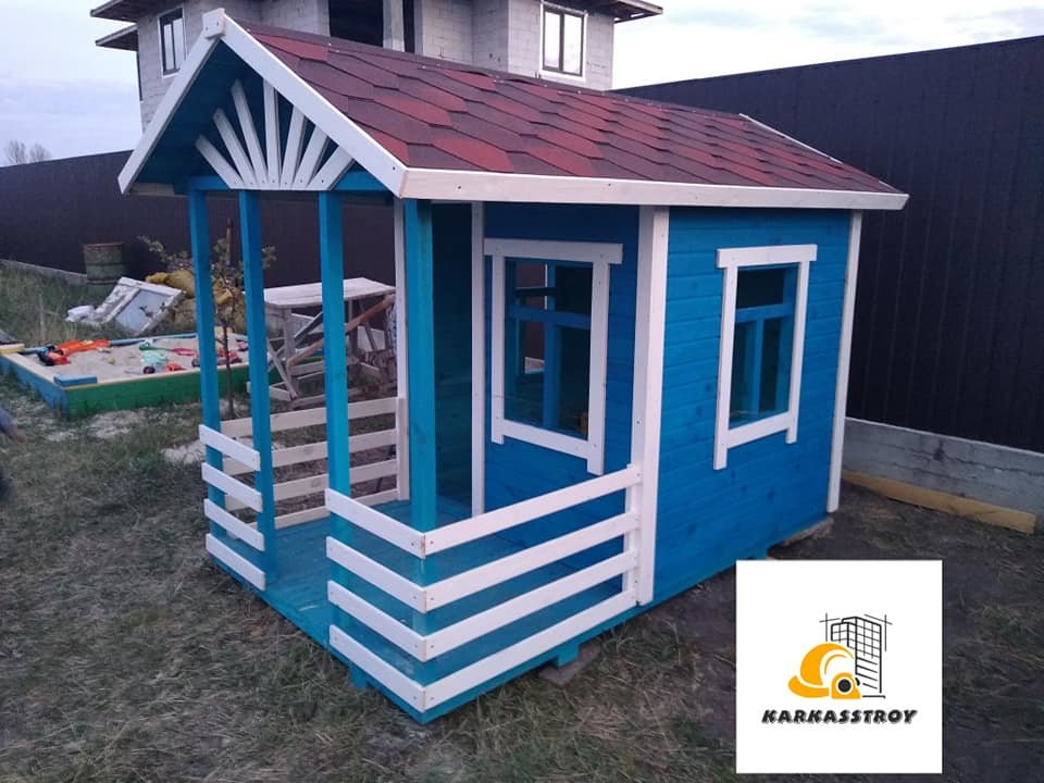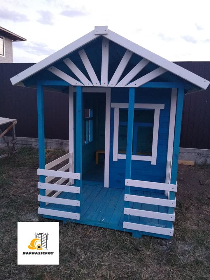 Детский домик Rondo blue понравится Вашему малышу! Мастера компании Karkasstroy тщательно продумывают все детали, чтобы домик был не только красивым, но и безпеним.