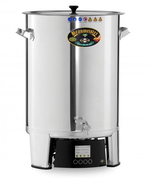Полностью автоматизированная система управления процессом пивоварения по заданному или вашему индивидуальному рецепту. Усовершенствованный блок управления дает возможность сохранять в памяти до 10 рецептов, оснащен пятью цветами подсветки на выбор. Имеет цельную лицевую сторону из оргстекла с сенсорными клавишами, помещен в корпус с IP65 степенью защиты, что позволяет мыть пивоварню, не опасаясь замочить электронный блок. Время и температура точно контролируется на протяжении всего процесса варки. В сравнении с громоздкими хобби пивоварнями других производителей, Braumeister не нуждается в постоянном перемешивании сусла. Благодаря запатентованной технологии использования солодовой трубы, сусло осторожно и равномерно циркулирует в объеме. Благодаря этому сусло не подгорает, а элементы пивоварни не выходят из строя.