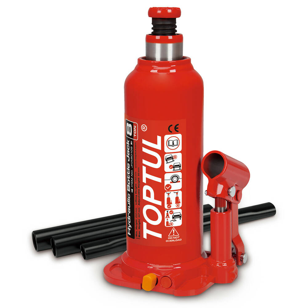 TOPTUL JHAB0108 — это надежный гидравлический бутылочный домкрат, предназначенный для безопасного подъема автомобилей при ремонте и техническом обслуживании. Отличается высокой прочностью, удобством использования и повышенным уровнем безопасности.