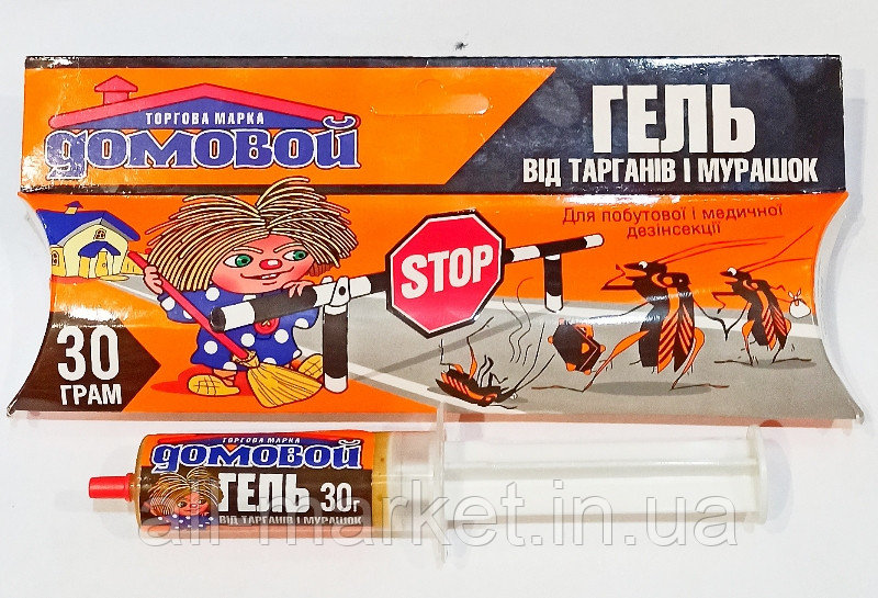 Домовой гель шприц - эффективный препарат, представляет собой вязкую массу в шприце, в основу которой входит современное активное вещество. Предназначен для уничтожения тараканов: рыжих, черных, американских и муравьев: рыжих домовых, черных, садовых.