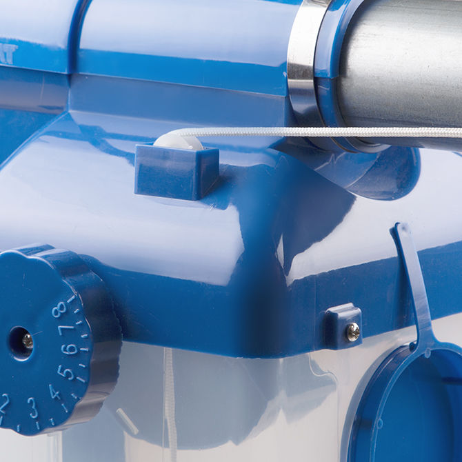Среди других особенностей дозатора: клапан с режимами On/Off; удобная ручка со шкалой для дозирования корма; нейлоновое колесико для защиты шнура от перетирания. Оснащается широкой заглушкой для легкого доступа внутрь и клипсой для прикрепления карточки с записями.