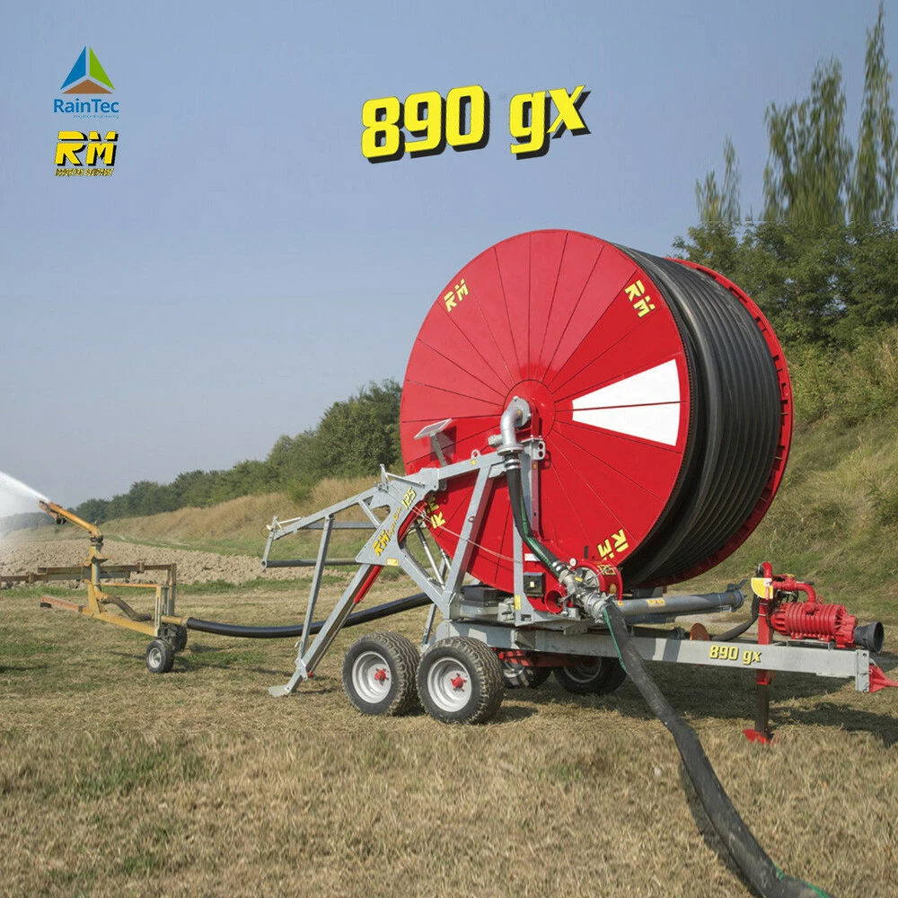 Ирригационные машины RM модели Gx имеют структуру с вращающейся башней, которая, путем поворота на нижней неподвижной раме позволяет повернуть катушку в нужном направлении для размотки шланга.