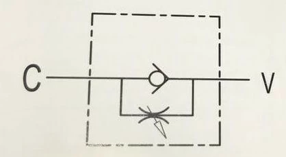 Клапан VRF 1/2" от Oleodinamica Marchesini, который регулирует скорость потока рабочей жидкости в одном направлении и обеспечивает свободный поток в другом. Поскольку в дросселе-бочке давление не компенсируется, то регулировка жидкости зависит от давления и вязкости масла.