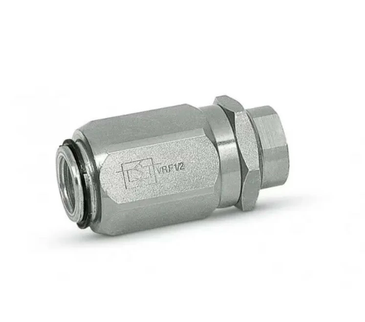 Корпус и втулка дросселя – бочки с обратным клапаном VRF 1/4" изготовлены из оцинкованной стали, а внутренние компоненты из термически закаленной и шлифованной стали. Уплотнение – стандарт BUNA N с помощью муфты, в результате чего происходит незначительная утечка при закрытом клапане. Максимальная пропускная способность – 20 л/мин Максимальное давление – 300 Бар.