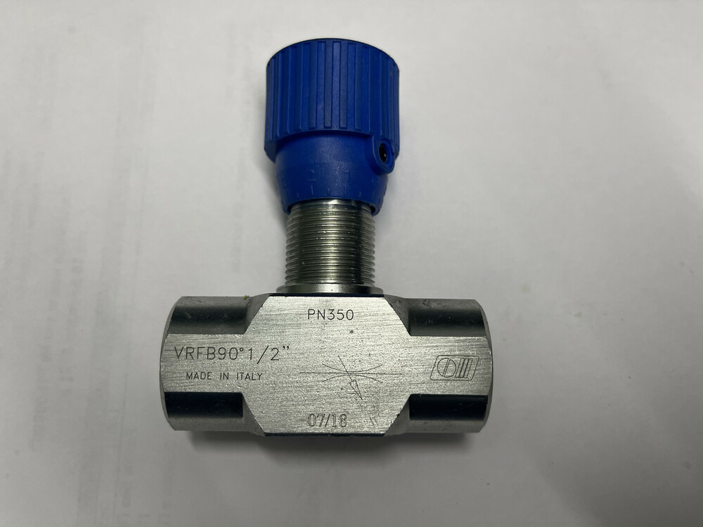 Дроссель Oleodinamica Marchesini с обратным клапаном VRFU 90° 1" регулирует скорость потока в одном направлении и свободно пропускает в обратном.