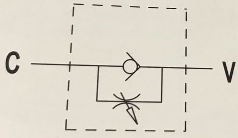 Подсоедините V к порту давления и C к к контролируемому порту. Поток регулируется от C до V и свободен в обратном направлении. При использовании на приводе с двусторонним гидрозамком необходимо установить VRF между актуатором и гидрозамком.