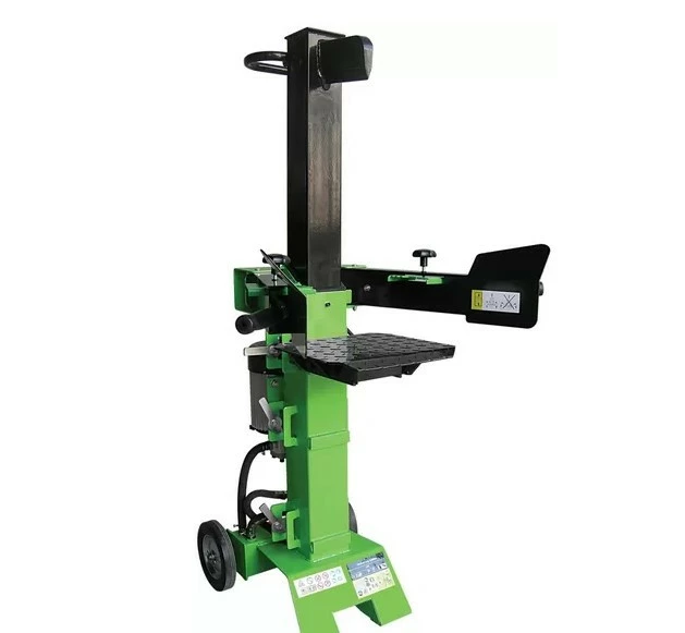 Этот агрегат вертикального типа весит 100 кг, однако при этом оснащен прочными колесами, за счет чего его можно передвигать в желаемое место. Дополнительно устанавливается колун, который делит бревно на четыре части, что очень удобно при получении заготовок для отопления.