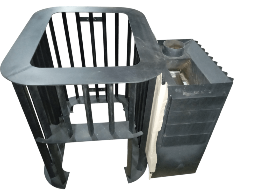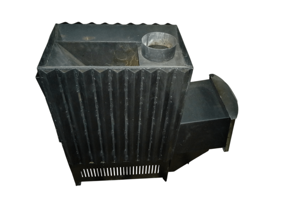 Смещенный к передней стенке печи выход дымохода обеспечивает удобный доступ к каменке, даже если установлена сетка с камнями на выходе дымохода. Это оценят любители запаривать веник на пару над каменкой.