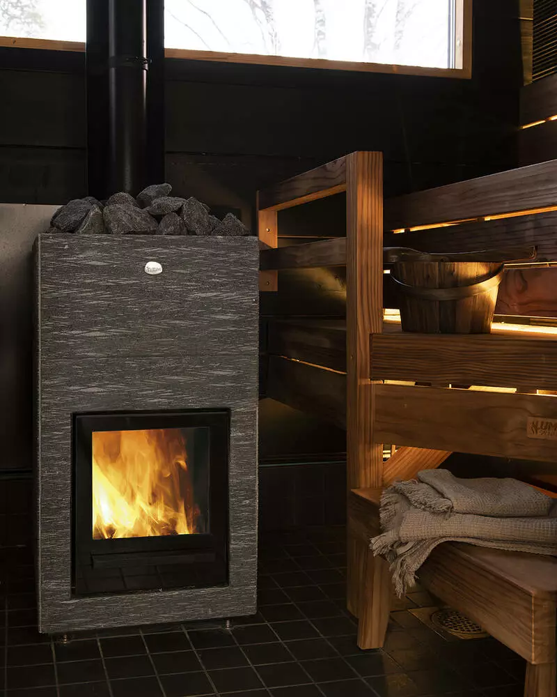• Наличие большого панорамного окна позволяет любоваться завораживающим видом огня находясь в парной.
