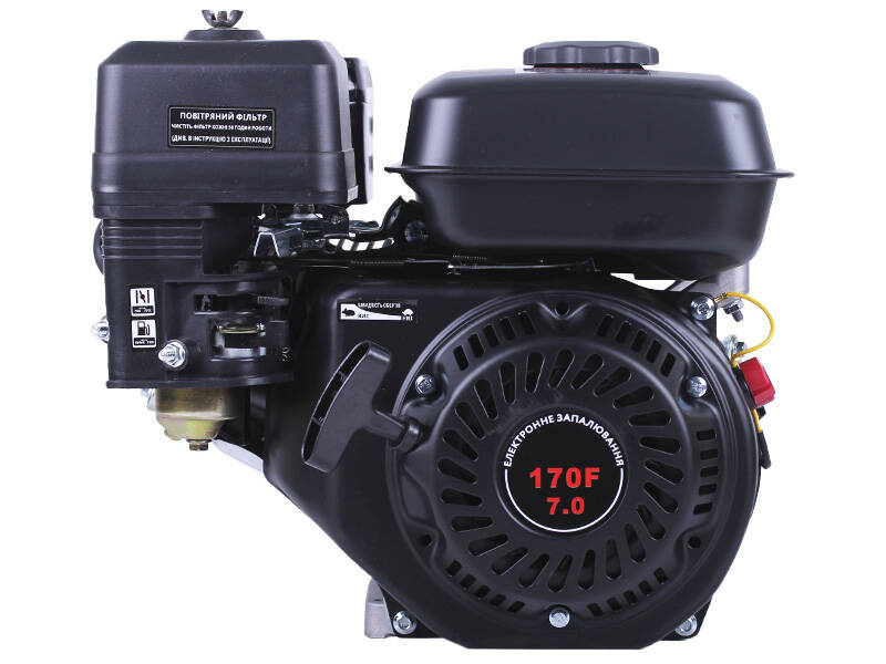 Бензиновый двигатель 170F TT с выходом вала под шпонку диаметром 20 мм – прибор, который Вы будете эксплуатировать с удовольствием. Благодаря этому мотору Ваша техника будет работать безотказно. Напомним, что он требует регулярного технического обслуживания, замены моторного масла в картере, а также фильтров. Следует помнить, что этот прибор не следует использовать в холостую, обкатывать его лучше всего в работе Применение Этот двигатель обладает универсальностью с точки зрения применимости на различных устройствах – садово-парковых, и строительных. Он устанавливается не только на мотоблоки, но и на виброплиты, электрогенераторы, культиваторы, газонокосилки, снегоуборщики и другую технику. С ним легко и удобно работать в полях до 4 гектаров. Принцип работы Мощность 7 лошадиных сил, а также максимальный крутящий момент 14 Нм позволяют непрерывно эксплуатировать этот двигатель на протяжении нескольких часов. Благодаря системе воздушного охлаждения прибор не склонен к перегреву. Бензиновый тип конструкции имеет ряд особенностей. Так в отличии от дизельного аналога он быстро заводится в любых условиях (в том числе зимой и поздней осенью, а также весной). Отметим, что заводится этот мотор при помощи ручного стартера. Кроме того, этот двигатель одноцилиндровый, четырехтактный. Это довольно распространенный тип конструкции, он используется даже на легковых автомобилях, мопедах. Такое качество, как универсальность, данный прибор получил благодаря выходу вала под шпонку. Вал располагается горизонтально, вращается по часовой стрелке. Также указанній двигатель отличается высоким коэффициентом полезного действия. Преимущества: