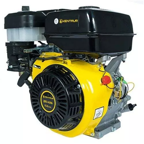 Опис двигуна бензинового Кентавр ДВЗ-420БДвигун внутрішнього згоряння кентавр двз-420б – потужний модульний універсальний бензиновий одноциліндровий чотиритактний повітряного охолодження двигун загального призначення.Двигун внутрішнього згоряння кентавр двз-420б потужністю 15,0 к.с. і робочим об’ємом 420 куб. См, може використовуватися в складі міні-електростанцій, у сільськогосподарській техніці: мотоблоках, мотокультиваторах, косарках, самохідних шасі, іригаційних та зрошувальних системах, у будівельному обладнанні: віброплитах, ударних трамбівках, бетономішалках, компресорах, насосах і помпах. Що примітно, кріплення двигуна – універсальне.Фіксація шківа або зубчастого колеса на вихідній частині вала двигуна кентавр двз-420б для передачі крутного моменту на різні допоміжні агрегати, системи та вузли здійснюється за допомогою шпонкового з’єднання.Для запуску бензинового двс використовується ручний стартер. Щоб уникнути пошкодження двигуна, за відсутності масла в картері або недостатній його кількості, передбачена аварійна система. У такий спосіб, за низького рівня масла в картері, система захисту зупинить його роботу, запобігаючи поломці. Для полегшення доступу з різних боків картера двигуна передбачені дві горловини для заливання масла з пробками-щупами.Завдяки компактним габаритним розмірам і невеликій вазі двигун кентавр двз-420б можна використовувати як силовий агрегат транспортних засобів, зокрема і водного транспорту: човнів, катерів і невеликих яхт.