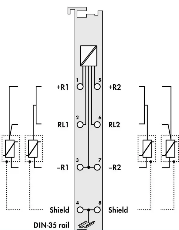 Двоаналоговый модуль ввода 750-461/003-000 обеспечивает прямое подключение к датчикам сопротивления Pt и Ni. Есть возможность подключения 2- или 3-проводных термометров.