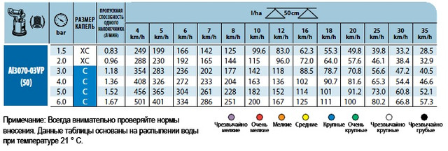 Используя запатентованный дизайн, плоскоструйный распылительный наконечник AI3070 TeeJet с двойной моделью распыления предоставляет одновременно две модели распыления на дополнительных при углах 30 ° и 70 ° от горизонтали. Передняя модельчасть насадки обеспечивает покрытие нижней части культуры и проникновение для покрытия участков под растительным покровом. Задняя одель часть насадки обеспечивает полное покрытие верхней части растительного покрова культуры. AI3070 идеально подходит для внесения фунгицидов и борьбы с болезнями зерновых культур.