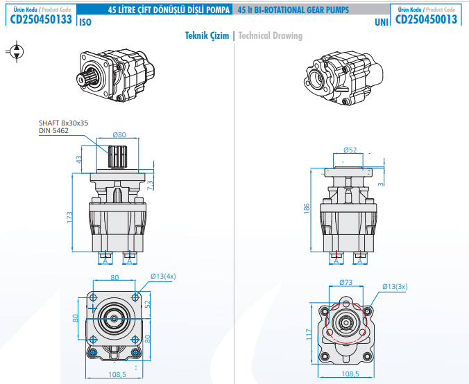 Двонаправлений шестеренный насос 45л ISO/UNI серии 25 Hidromas