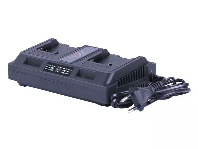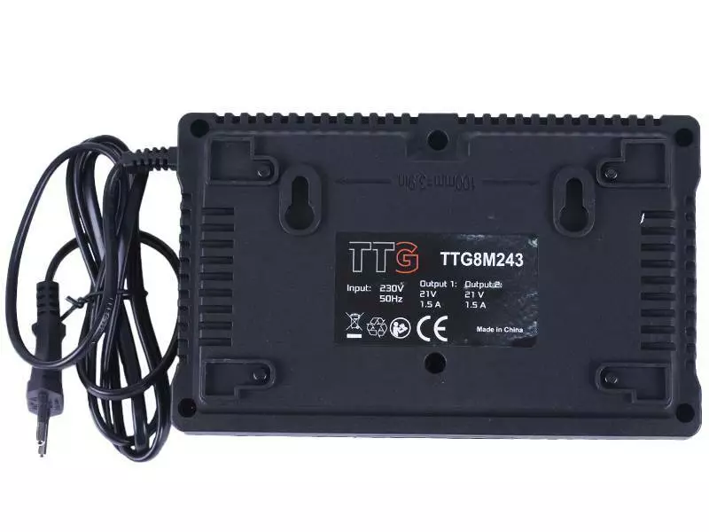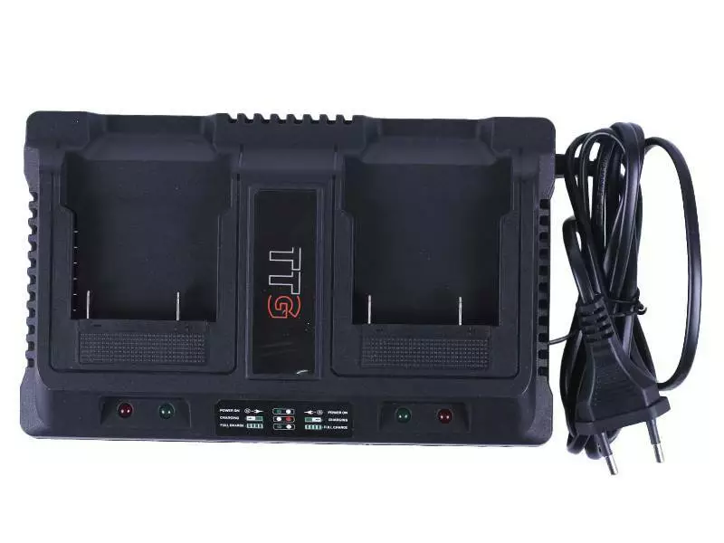 Двойное зарядное устройство TTG, 21V - предназначено для восполнения энергии литий-ионных аккумуляторов, служащих источником энергии для цепных пил и другого садового инструмента. Источник питания оборудования двумя независимыми слотами для подключения аккумуляторов. Данная особенность полезна при профессиональном использовании, позволяя заряжать несколько батарей одновременно. Встроенный контроллер защищает устройство от короткого замыкания, перенапряжения и повышенной нагрузки. Импульсная система преобразования обеспечивает высокий КПД, снижение потерь на нагрев и облегченную конструкцию. Значительная длина сетевого кабеля облегчает использование устройством независимо от расположения розетки.