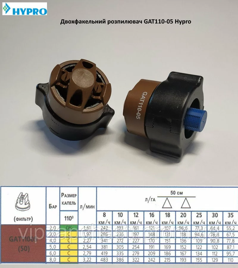 Двух факельный распылитель GAT110-05 Hypro 200-400 л/га