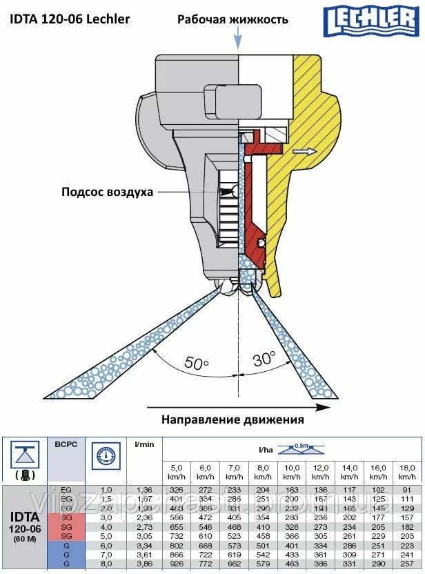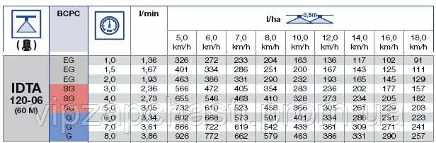 Нормы расхода распылителя IDTA Lechler:
