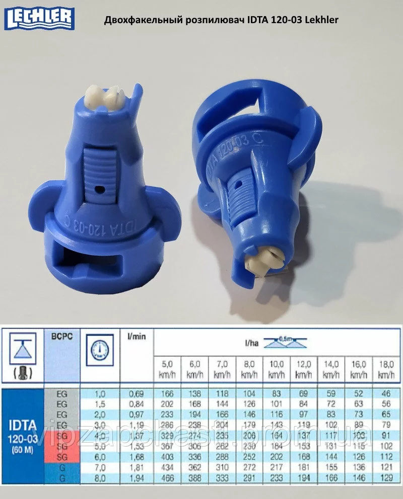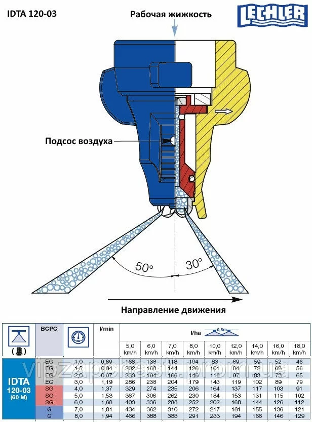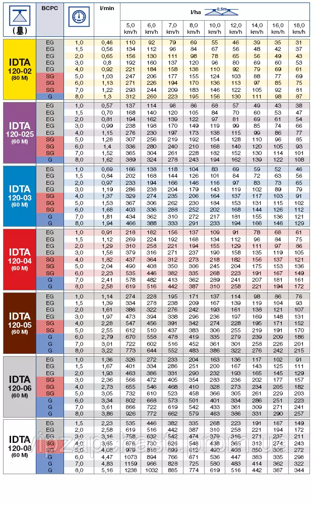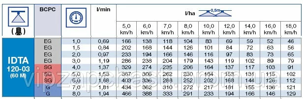 Нормы расхода распылителя IDTA Lechler: