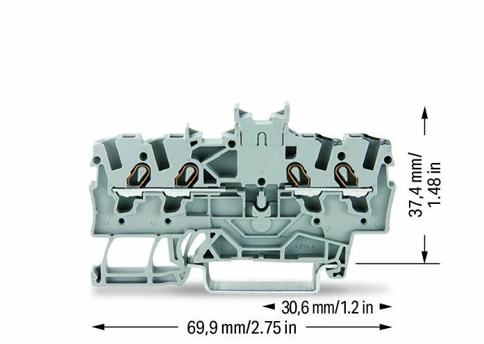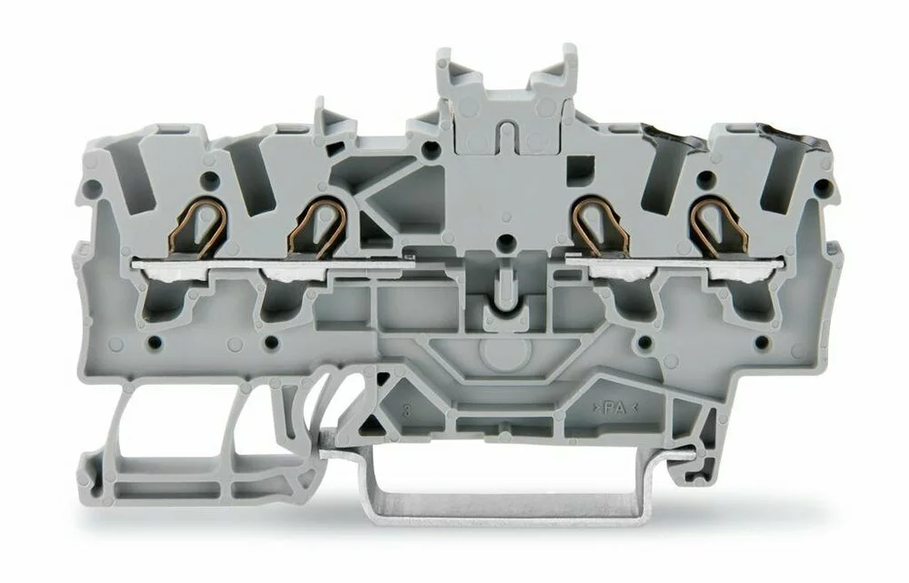 Двухпотенциальные клеммы 1,5 мм² Wago 2001-1441, с двойным центральным маркировочным разъемом; для DIN-рейки 35 x 15 и 35 x 7,5; Push-in CAGE CLAMP®; 1,50 mm²; серые.