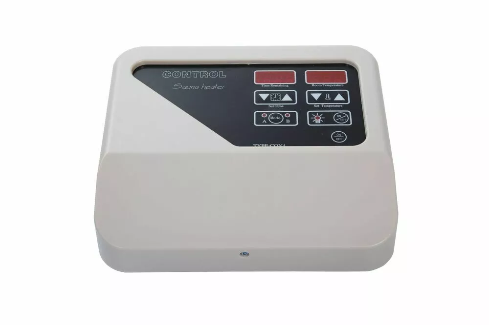 Если вы решите купить электрокаменку EcoFlame представленной модели, в комплекте вы получите пульт CON4, что позволит легко настраивать микроклимат парной. Удобный и интуитивно понятный пульт управления каменкой позволит в точности до единиц отрегулировать температуру, время работы, а также, включать свет.