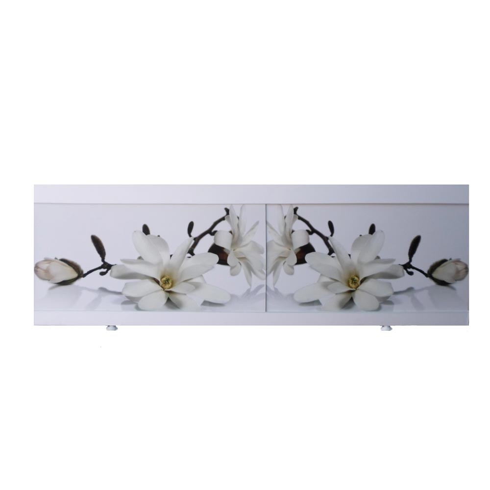 Экран изготовлен из влагостойких материалов, то что нужно для ванной комнаты.Ширина экрана 160 см. Высота экрана составляет 50 см + 2 см ножки + до 3х см регулирующие. При необходимости добавляем удлинители. Установочная высота увеличивается до 60 см за счет откручивания и удлинение ножек. Мы используем качественные материалы, которые в свою очередь имеют хорошую износостойкость, влагостойкость и гибкость. За счет этого в этом экране можно сделать вырез под порожки и трубы (вдоль стен) самостоятельно. При этом сохраняя целостность и функциональность конструкции.Экран скроет ужасное темное пространство под ванной, так что Вы сможете еще и использовать это место с пользой. Спрячьте за экраном бытовую химию, и посмотрите сколько места у Вас освободилось в шкафу? Целая полка, а может и две.Вы предпочитаете светлые тона, но просто белый - это просто. Нежные цветы магнолии разнообразят интерьер и "просто белый" будет интересней.Раздвижные створки экрана под ванну изготовлены из вспененного ПВХ с нанесением пленки  и фотопечати. Они - влагостойкие, а значит подходят для ванной, место всегда с повышенной влажностью. Пленка с изображением будет радовать Вас и поднимать настроение при каждом взгляде. Ведь понравившийся цвет или оттенок приносит эмоциональное удовольствие.В нашем магазине можно купить с таким же изображением и тумбу.Возникли вопросы, напишите "Задать вопрос о товаре". Мы с радостью ответим на все что Вас интересует в нашем магазине.