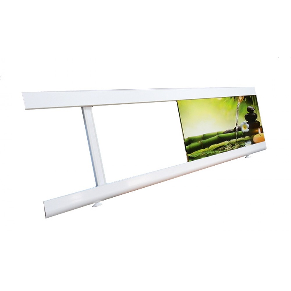 Ширина экрана 190 см. Высота экрана составляет 50 см + 2 см ножки. Регулировочная высота от 52 см до 60 см. В этой серии экранов можно сделать вырез под порожки и трубы вдоль стен самостоятельно. При этом не нарушая целостности и функций конструкции.Экран скроет ужасное темное пространство под ванной, так, что Вы сможете ещё и использовать это место с пользой. Спрячьте за экраном бытовую химию, и посмотрите сколько места у Вас освободилось в шкафу? Целая полочка, а может и две.Раздвижные створки экрана под ванну изготовлены из композитной сендвич-панели. Они плотные, крепкие, влагостойкие, выносливые.