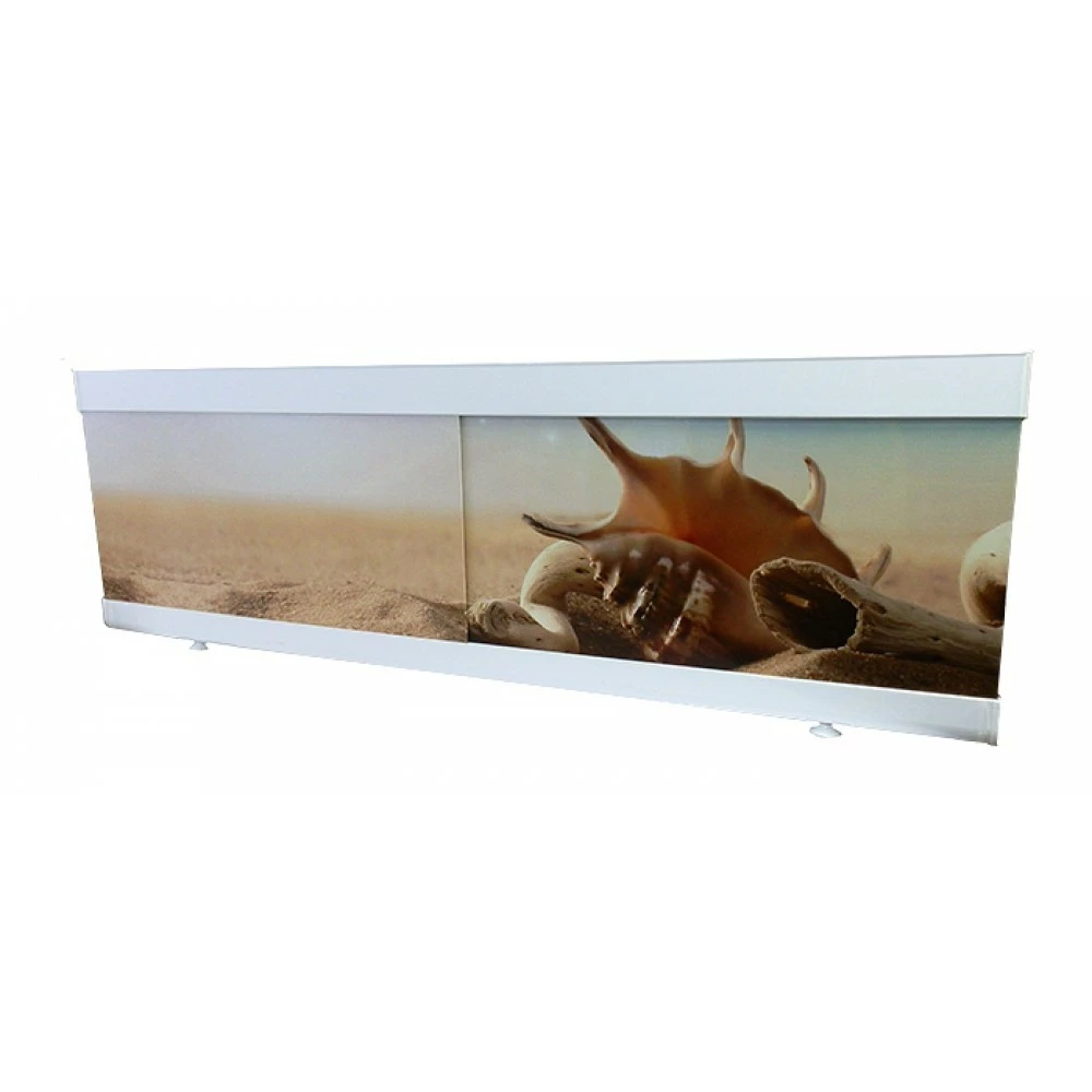 размеров Вашей ванной. Экран скроет ужасное темное пространство под ванной, так, что Вы сможете ещё и использовать это место с пользой. Спрячьте за экраном бытовую химию, и посмотрите сколько места у Вас освободилось в шкафу? Целая полочка, а может и две!Раздвижные дверки экрана под ванну изготовлены из композитной сендвич-панели. Они плотные, крепкие, влагостойкие, выносливые. Пленка с изображением будет радовать Вас и поднимать настроение при каждом взгляде. Какой замечательный и яркий рисунок на раздвижных дверках из композита! Голубое небо и песчаная гладь, ракушка необычайной формы завораживает своим размером. Согласно книге Рекордов Гиннесса, самая длинная раковина может достигать до 1,2 м, а масса крупных экземпляров может превышать 200 кг. Представьте, как это иметь гигантскую ракушку у себя дома, ну хотя бы нарисованную. Это невероятно...В нашем магазине можно купить с таким же изображением и тумбу.